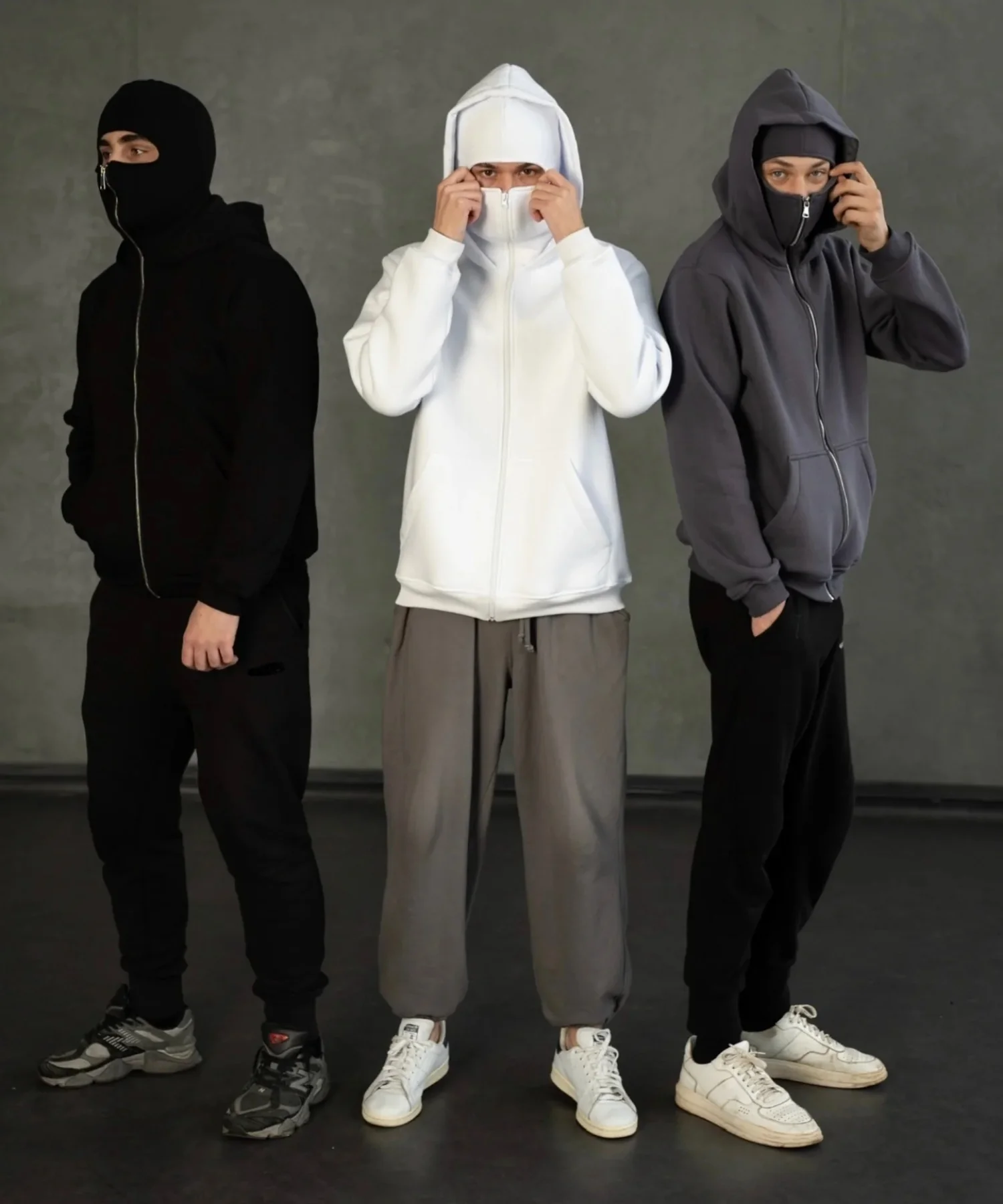 The Ninja Zip Up Hoodie’s built-in face mask and sleek double-hood design keep you warm, windproof, and effortlessly cool.